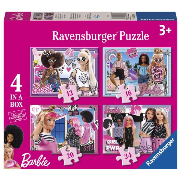 Detta Barbiepusselset är perfekt för unga fans som vill ha roligt och utmanas! Setet innehåller fyra pussel med olika bitantal (12, 16, 20 och 24 bitar), vilket gör det idealiskt för barn i olika åldrar eller för att gradvis öka svårighetsgraden.