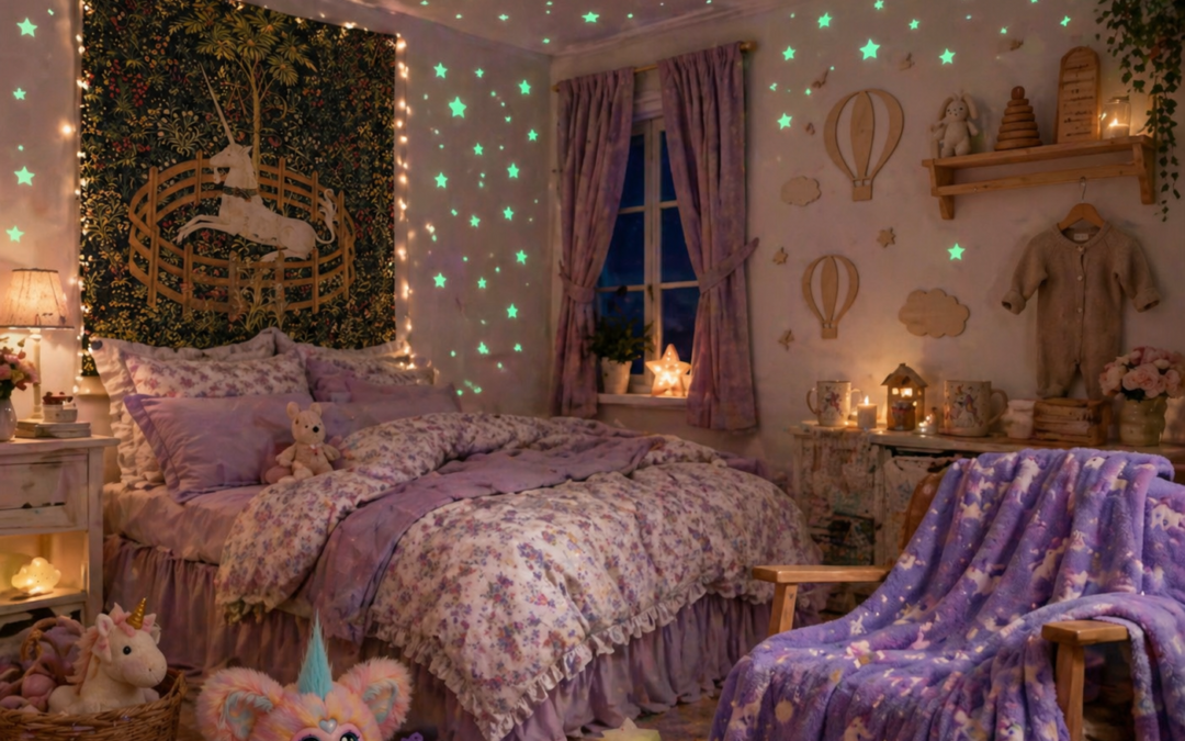 En tydlig trend som fortsätter växa är fascinationen för glow-in-the-dark detaljer. Det handlar om att skapa en trygg och fantasifull miljö när lamporna släcks – där rummet inte blir mörkt och tomt, utan istället förvandlas till något magiskt. För barn kan detta göra stor skillnad vid läggdags, då mjuka ljuspunkter skapar en lugnande och trygg känsla samtidigt som fantasin får utrymme att leva vidare.