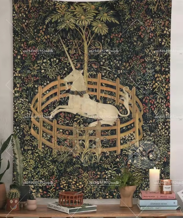 Denna väggbonad med motivet The Unicorn in Captivity är ett perfekt exempel på hur klassisk konst möter modern, lekfull estetik. Med sitt vintageinspirerade uttryck och detaljrika design fungerar den både som en elegant väggdekoration och som en mångsidig textil – lika fin att använda som strandfilt, picknickfilt eller yogamatta.