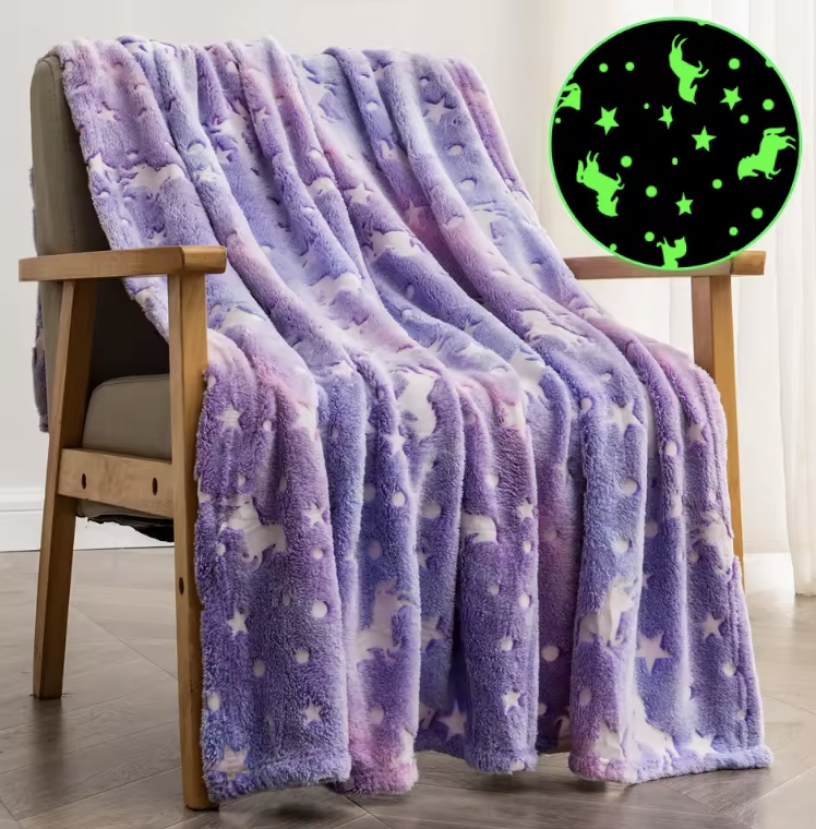 Denna självlysande enhörningsfilt är ett perfekt exempel på denna trend. Tillverkad i mjuk fleece ger den en varm och ombonad känsla, perfekt för mysiga kvällar eller lugna stunder. Det magiska glow-in-the-dark-motivet gör filten extra speciell och skapar en trygg, drömlik atmosfär när lampan släcks.